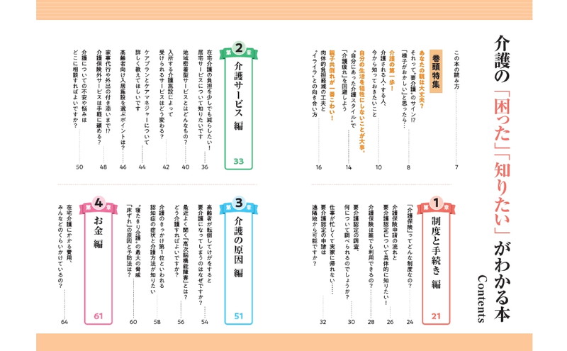 親に介護が必要になったら……? いつかはやってくる、その日。「親が忘れっぽくなった気がする……」「仕事は辞めないといけないの?」「費用は親の貯金で賄えるの?」といった不安を、漠然と抱えている方も多いことでしょう。本誌は、そんな不安はもちろん、すでに介護に携わられている方が直面するお悩みにお答えします。「困った」「知りたい」ときは、この本を開けば大丈夫。もしものときにこの一冊があれば安心の「大事典」です!