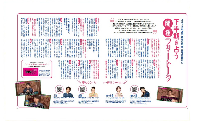 今号もテレビや雑誌などで活躍する人気の占い師が集結しました!