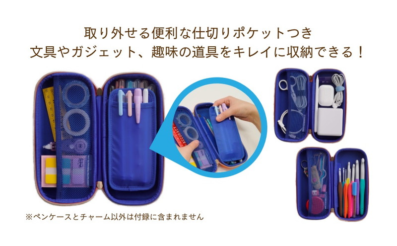ペンや文具だけでなく、ガジェットケース、メイクブラシケース、編針入れなどとして使っても。