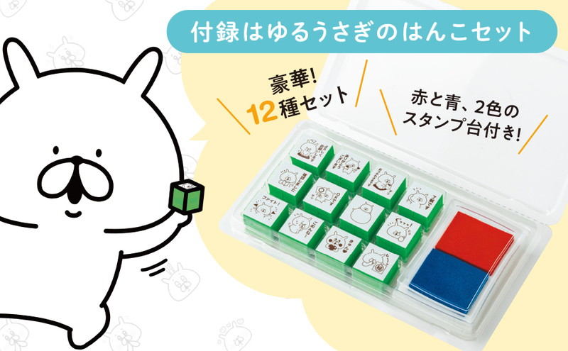 ゆるうさぎのはんこ12種セット+2色スタンプ台付き