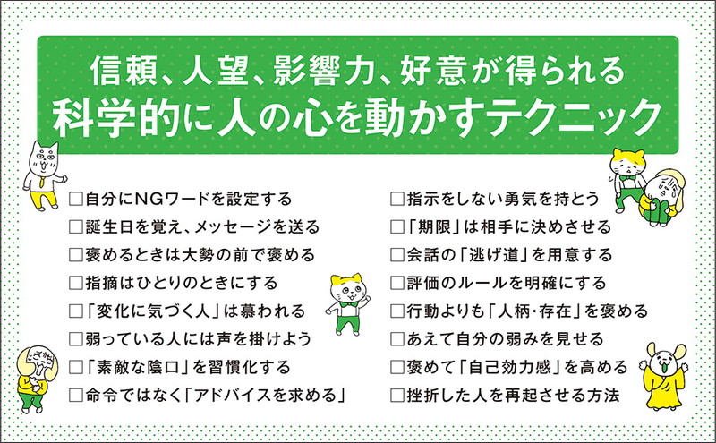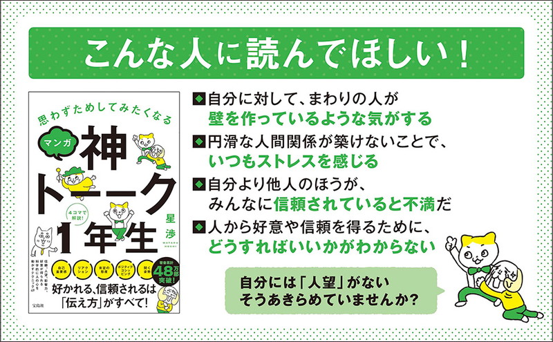 講演会で大人気の著者が、心理学や脳科学に基づいて、好意や信頼をもたらす「科学的に人の心を動かす伝え方」に関し、4コママンガを交えつつ解説。