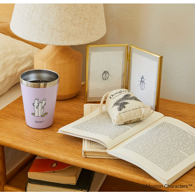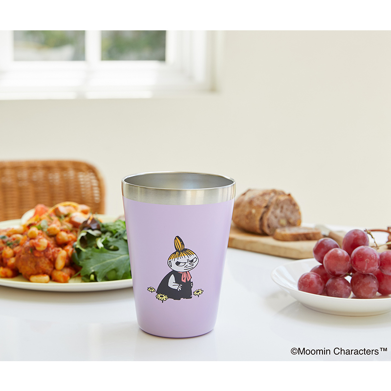 カップドリンクをそのまま入れることができ、おいしい温度が長持ちすると大人気の、ムーミンの真空断熱タンブラーに再び新柄が登場! 大人っぽいライトパープルをベースに、前後に描かれたリトルミイとニョロニョロのアートがかわいいデザイン♪