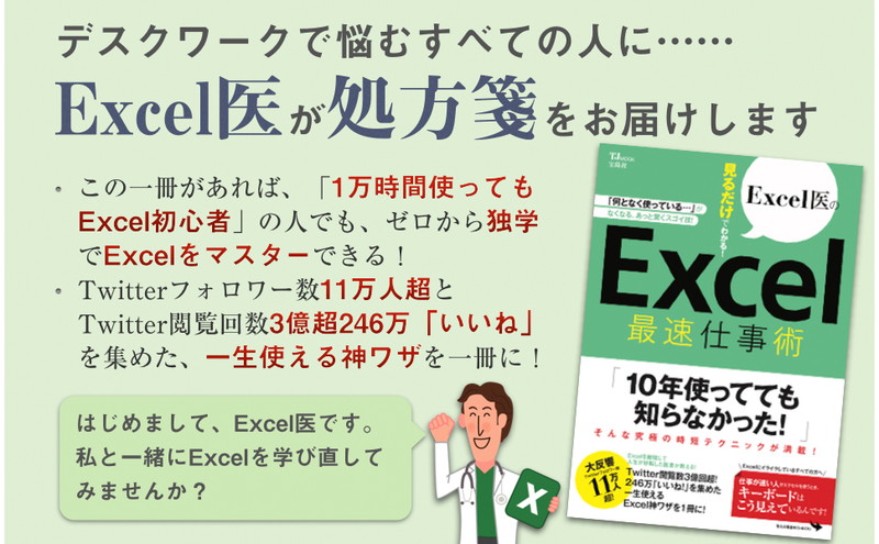 職場の悲惨なデータベースを見てExcelを猛勉強した著者が、誰でも今すぐ結果が出る「最速&見やすい&ミスしない」Excelの実践ノウハウをぎゅっと一冊に詰め込みました。