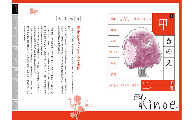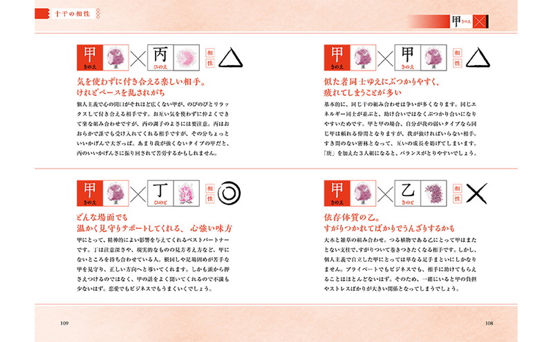 本書では、四柱推命の中でも「日干(にっかん)」の要素にスポットを当て、的中率の高さはそのままに、今井先生の鑑定を体験できます。「日干」とは、「その人自身を表す」といわれ、四柱推命では最も重要視されます。生まれ持った気質や考え方から、才能、気になる人との相性、そして開運法までわかります。