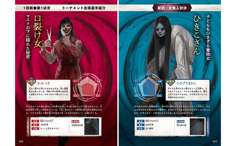 口裂け女、八尺様やアクロバティックサラサラなどがトーナメント方式で大迫力のバトルを繰り広げます。