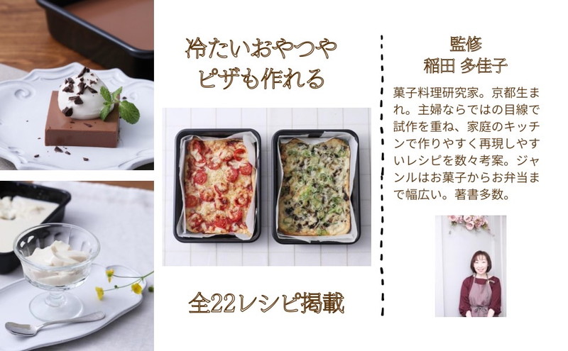 付属の型「あれこれ作れるベーキングパン」は、そのままオーブンに入れて焼くのはもちろん、冷やし型としても使えます。