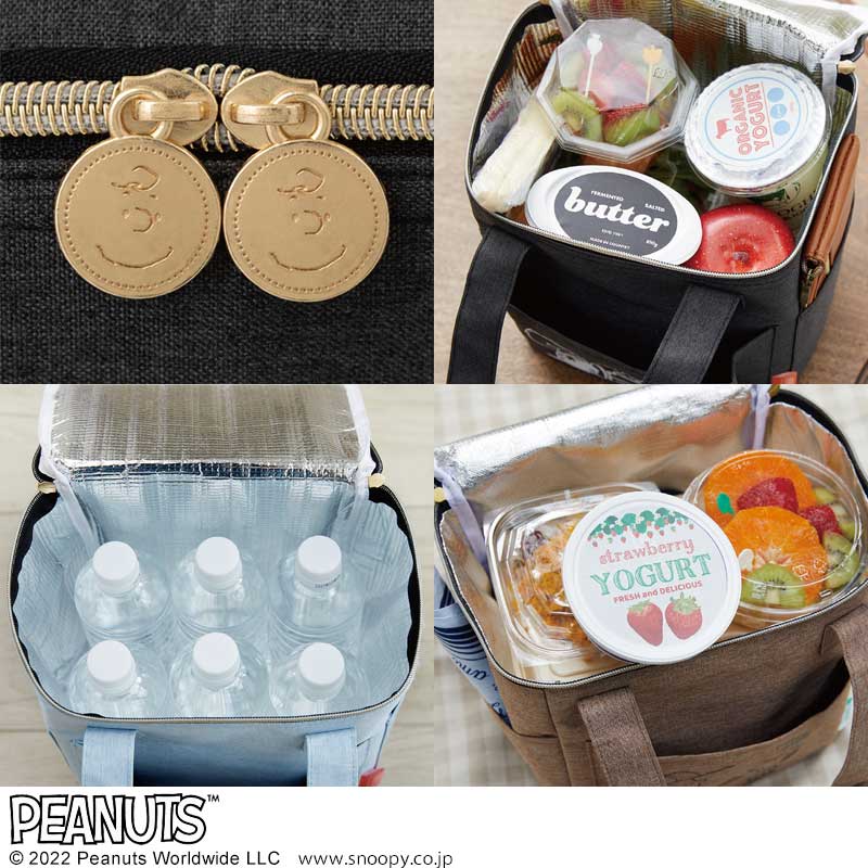 Wファスナーで使い勝手がよく、ブルーとブラックはチャーリー・ブラウン、ブラウンはウッドストックのファスナートップでバッグの開閉も簡単です。