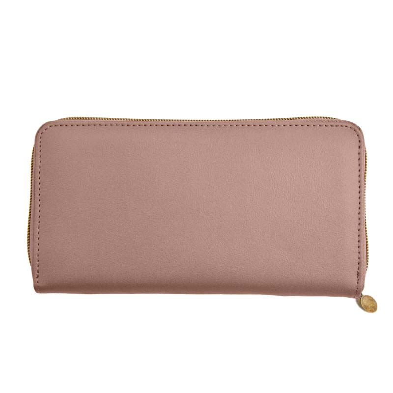 リッチ感のあるレザー調の生地に、くすみ系で大人に似合うピンクベージュとスモーキーブルーの2種類で展開。