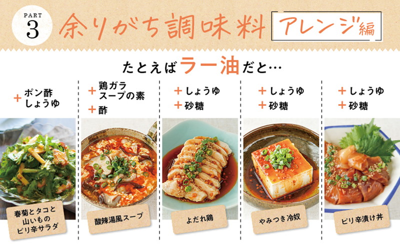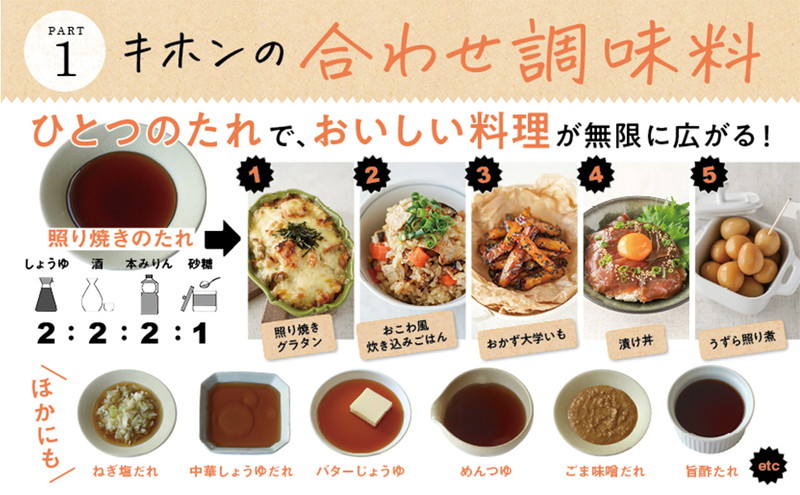 この比率さえ知ってしまえば、いつもの料理が格段においしくなります! 第一作と違い、今回は基本の合わせ調味料のほか、健康にいい麹調味料を使ったレシピ、オイスターソースやコチュジャンなど、ついつい余らせてしまいがちな調味料を使用したレシピなど179のレシピを掲載。ありそうでなかった、便利な一冊です。