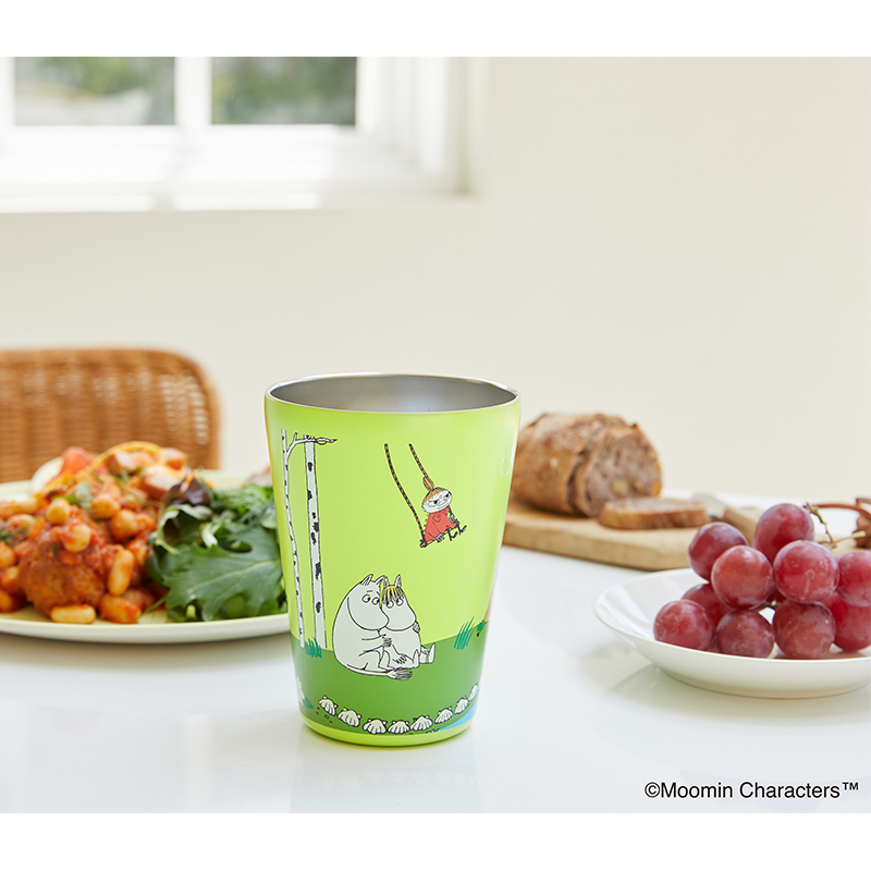 カップドリンクをそのまま入れることができ、おいしい温度が長持ちすると大人気の、ムーミンの真空断熱タンブラーに、宝島チャンネル限定の新柄が登場! 草原でピクニックを楽しんでいるようなムーミン谷の仲間たちのアートがかわいいデザイン♪