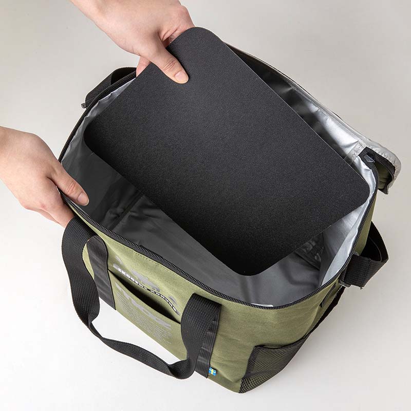 フタの裏には保冷剤を入れられるポケット付き。天面から冷やすことで
