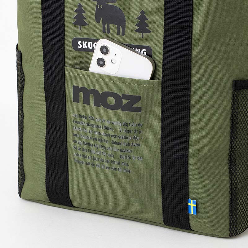 両サイドにはメッシュのポケットが。レジャーシートも収納できる幅広サイズ&