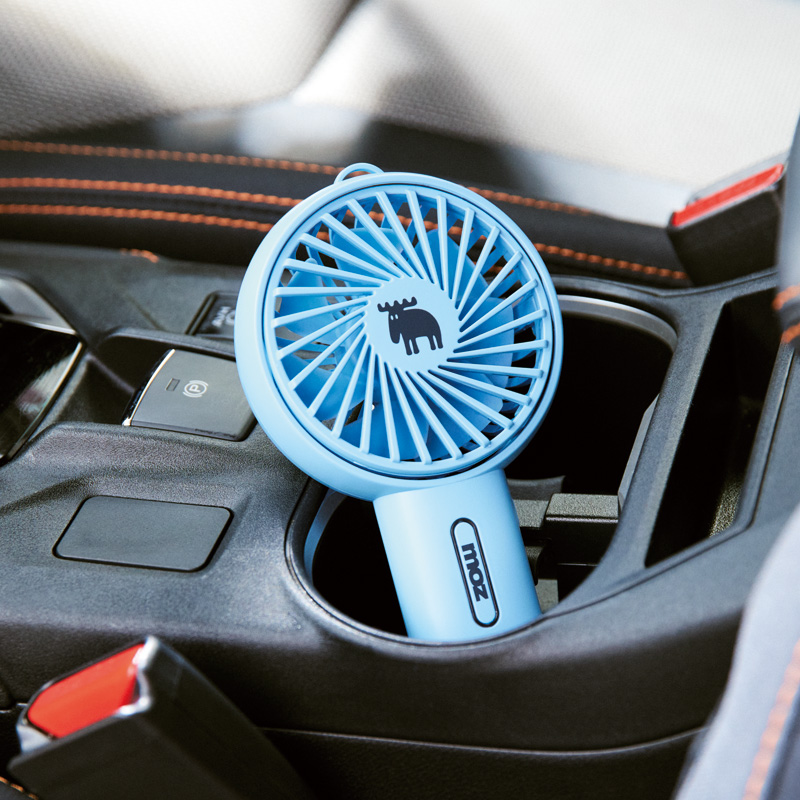 手持ち&スタンドの2WAY仕様でアウトドアはもちろん、デスクワークや熱がこもりやすい車内などいろいろなシーンで大活躍。