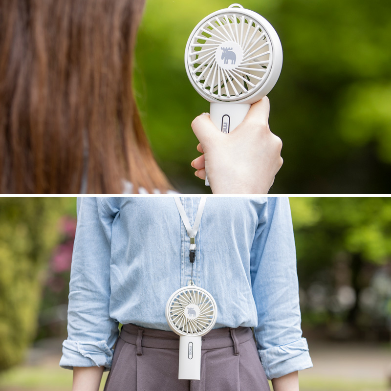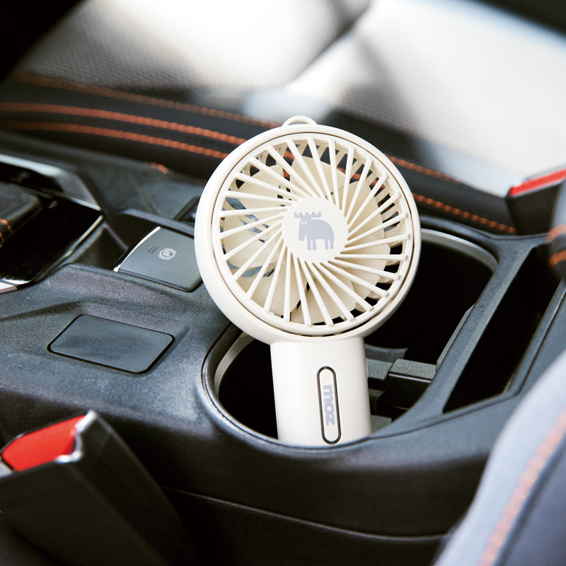 手持ち&スタンドの2WAY仕様でアウトドアはもちろん、デスクワークや熱がこもりやすい車内などいろいろなシーンで大活躍。