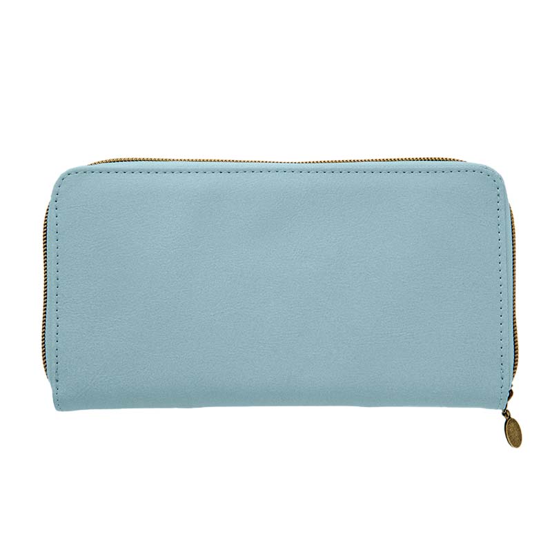 リッチ感のあるレザー調の生地に、くすみ系で大人に似合うピンクベージュとスモーキーブルーの2種類で展開。