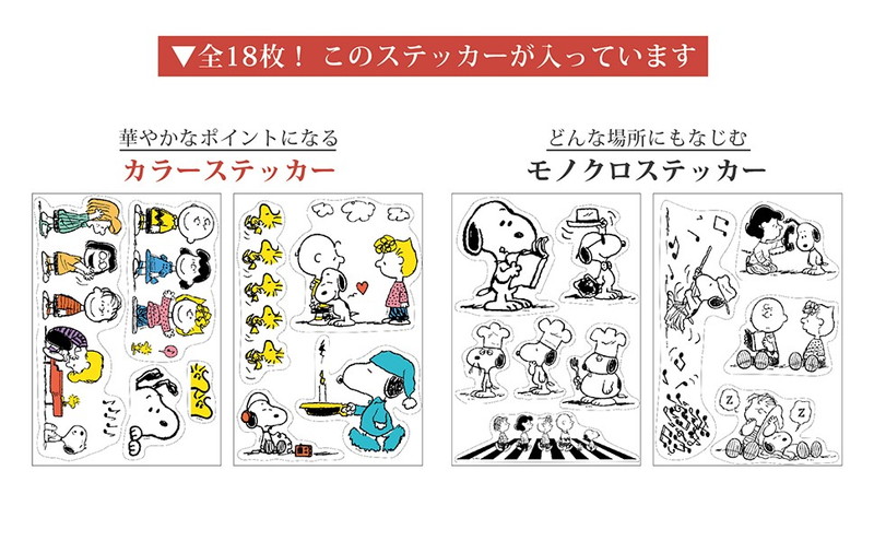 スヌーピーやチャーリー・ブラウン、ウッドストックなど、人気キャラクターたちのステッカーが、4シートにたっぷり入っています。貼るだけで手軽に模様替えができ、自宅で過ごす時間が増えている今にぴったりのアイテムです。かわいくて使いやすいイラストが満載で、目に入るとほっこりかわいく、どんなお部屋にもなじむデザインです。大小さまざまなステッカーがあるので、壁に貼ってお部屋をイメージチェンジしたり、電気のスイッチまわりに貼ったり、お部屋の小物に貼ってみたりと、使い方は自由自在。大人かわいく、遊び心のあるお部屋づくりを楽しめるステッカーです。