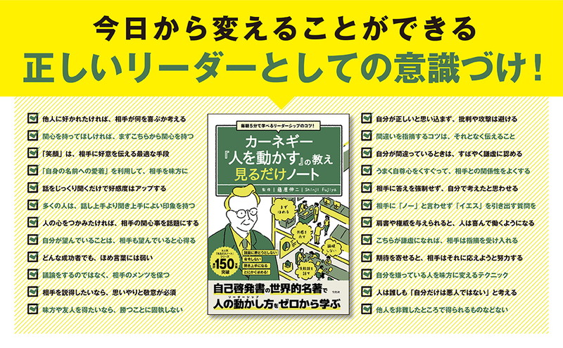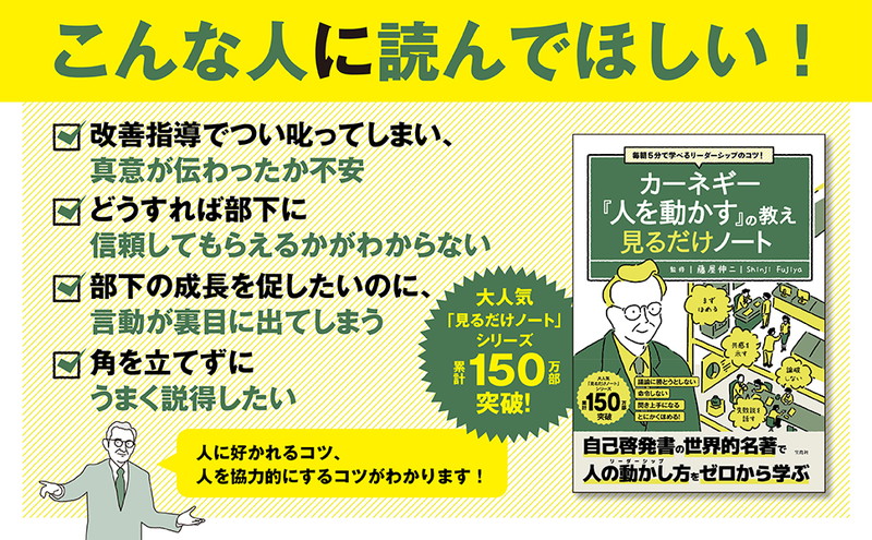 自己啓発の名著であるカーネギーの『人を動かす』が、累計150万部突破の大人気「見るだけノート」シリーズに登場!