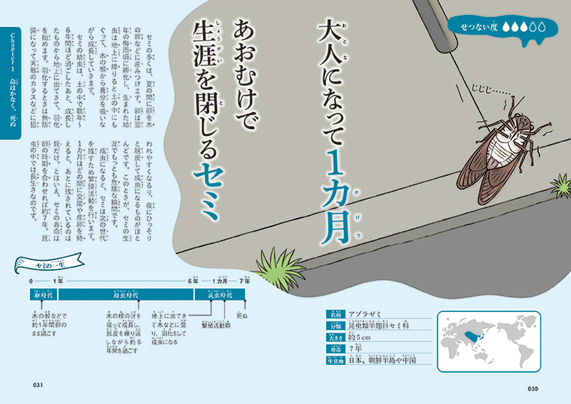 なぜ私たちは生きて、死ぬのか――? 生き物たちの死に方を学べば、「命の尊さ」が実感できる! おなかを壊して死ぬこともあるメンタル繊細なゴリラ。一生の最期の輝やき! 死ぬためにふるさとに帰るサケ。大人になって1カ月、あおむけで生涯を閉じるセミ。生き物たちの最期の輝きに涙が止まらない。