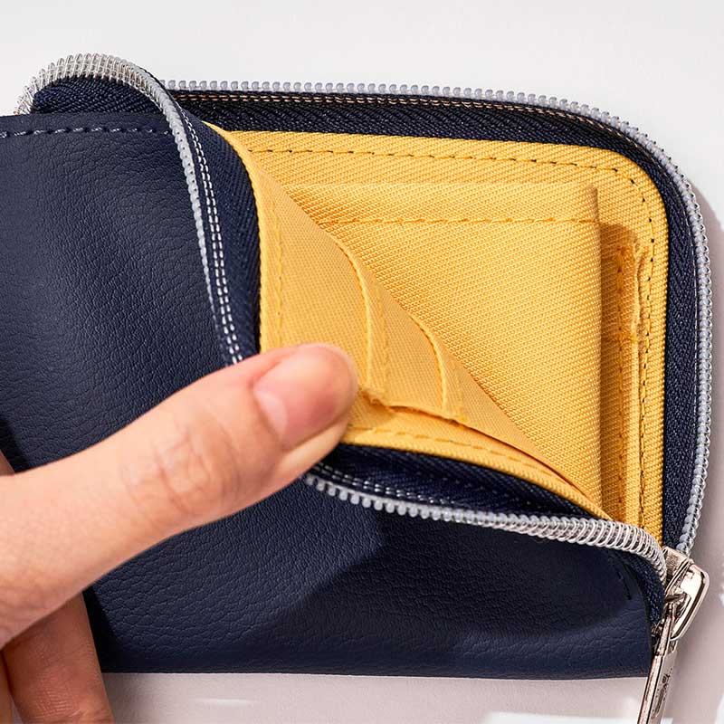 コインポケットにはあえてファスナーをつけず、見やすくサッと出し入れできる形に。