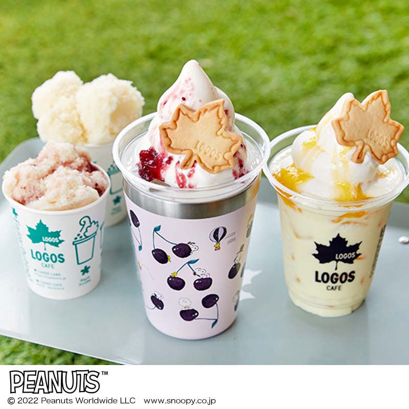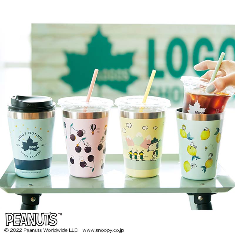 日本生まれのアウトドアブランド『LOGOS』とのコラボレーションデザインは、ビーグル・スカウトに扮したスヌーピーとウッドストックがアウトドアを楽しむデザイン。