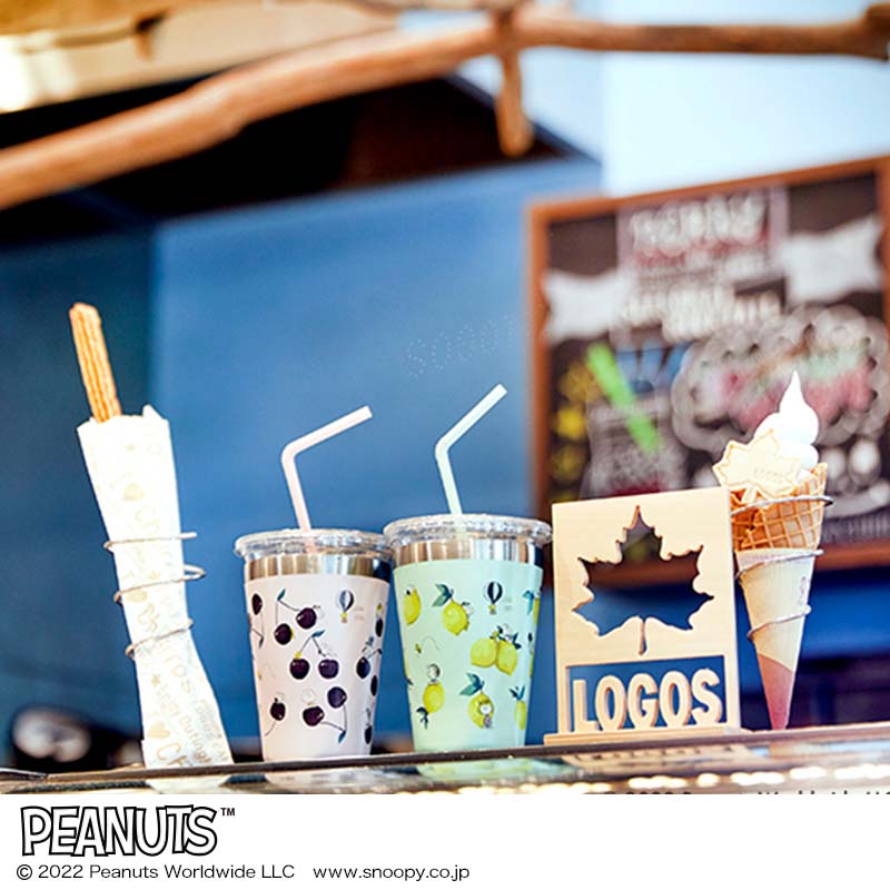 フルーツと遊ぶPEANUTSの仲間たちの柄のタンブラーは、ファッション小物感覚でバッグに忍ばせて、テイクアウトドリンクの際に使いたくなるかわいいデザインです。