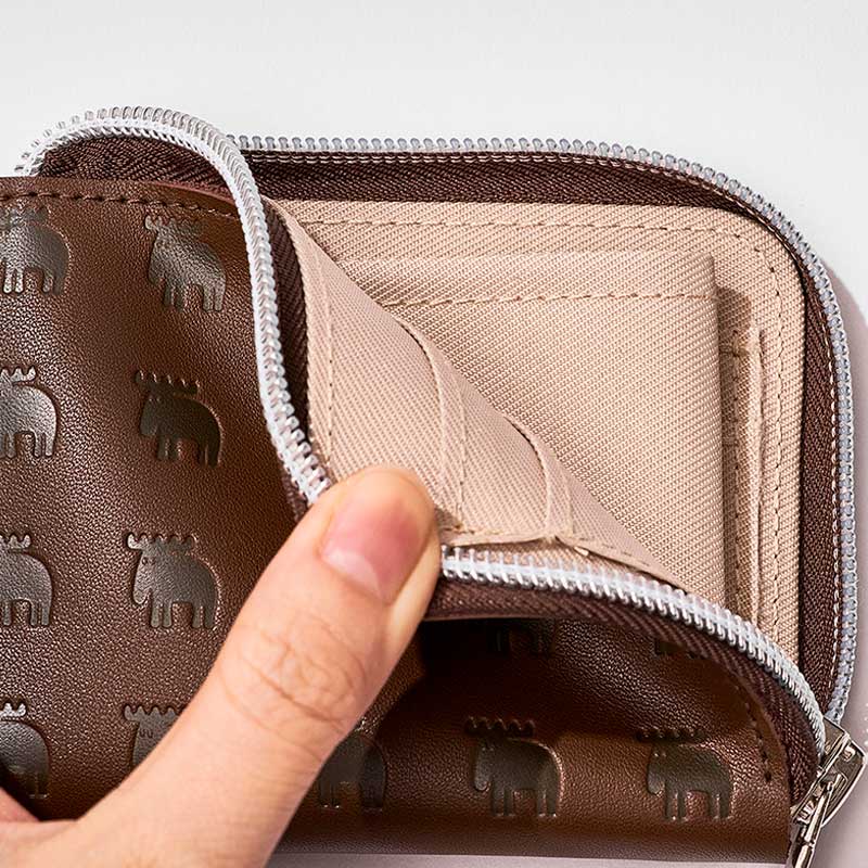 mozらしいヘラジカの型押しで、シンプルながらおしゃれなデザイン。