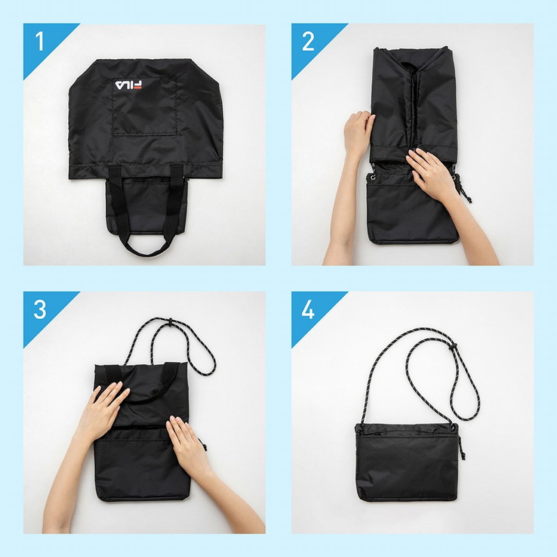 サコッシュの背面ポケットに大容量のトートバッグがすっぽり収納されている驚きの機能的なバッグ!
