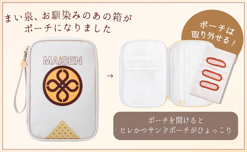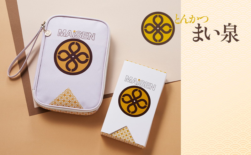 スペシャルアイテムは、まい泉の看板商品「ヒレかつサンド」のパッケージデザインをそのまま生かしたマルチポーチ。