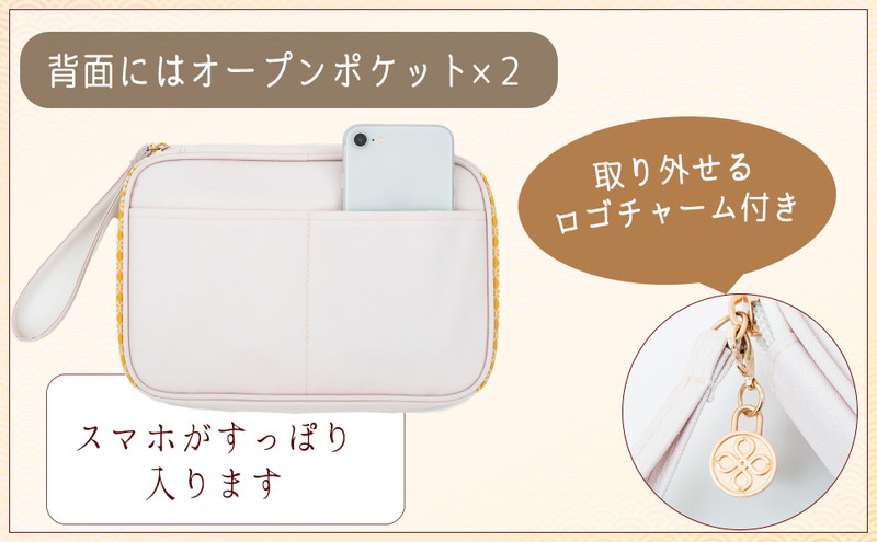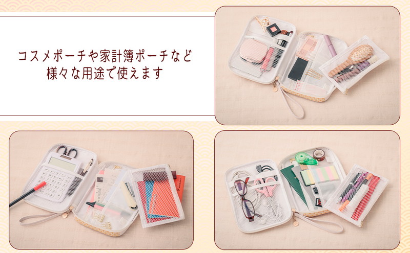 使いやすさにもこだわり、小物からコスメまで、こまごましたものをきれいに収納できる実用的なマルチポーチです。