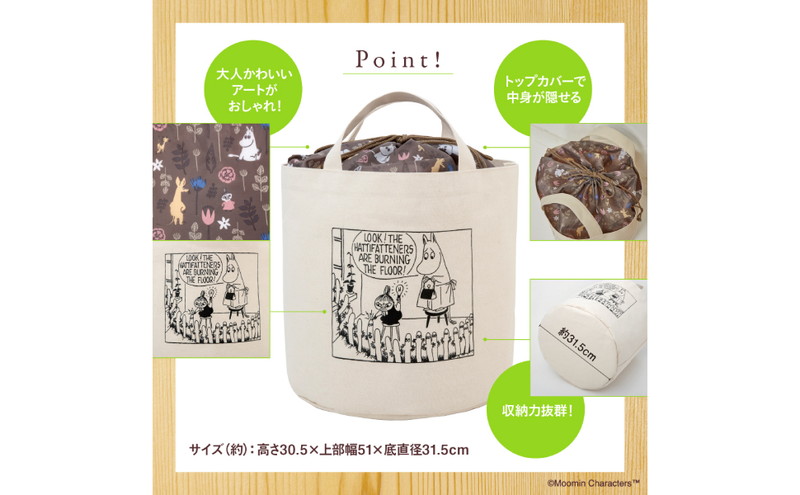 おうちではおもちゃや食材のストック、リビングの雑貨やランドリーグッズなど、ごちゃつきがちなものをスッキリまとめる収納バッグとして、外出時は大容量のトートバッグとして使えます。トップカバー付きなので中身が見える心配もなし。買い物や旅行、アウトドアシーンでも大活躍します。車でのお出かけに、車内収納バッグとしても便利♪ リトルミイやニョロニョロ、ムーミンママが描かれた、シンプルで大人かわいいデザインにも注目です。