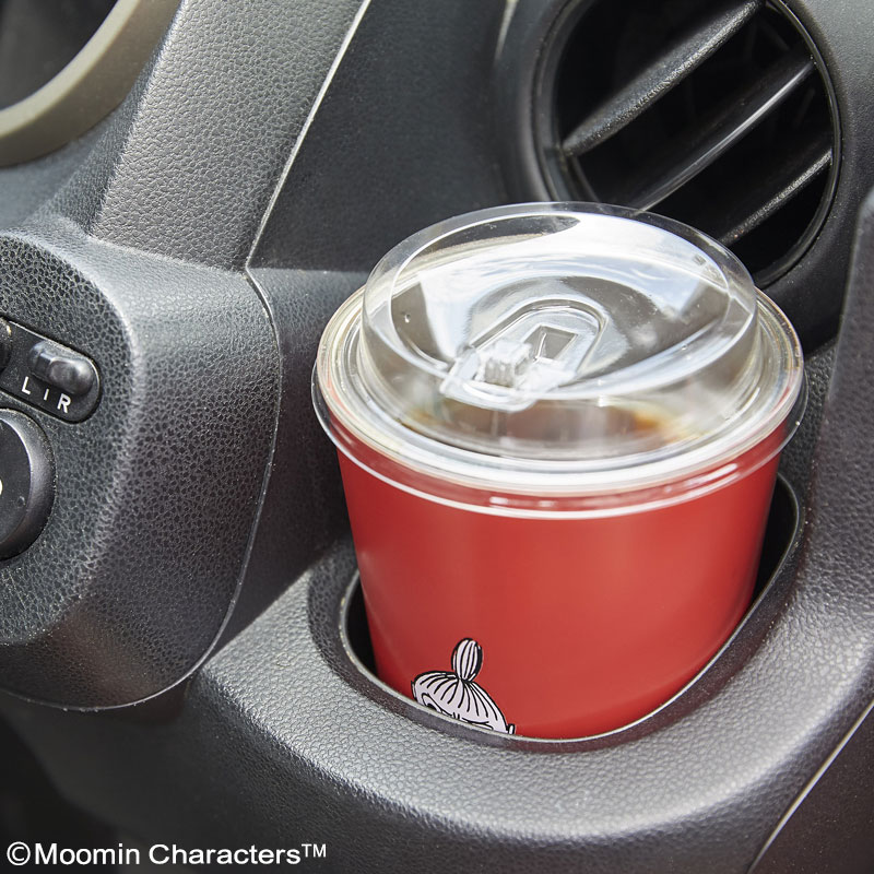 大人っぽいレッドをベースに、前後に描かれたリトルミイとニョロニョロのアートがかわいいデザイン♪