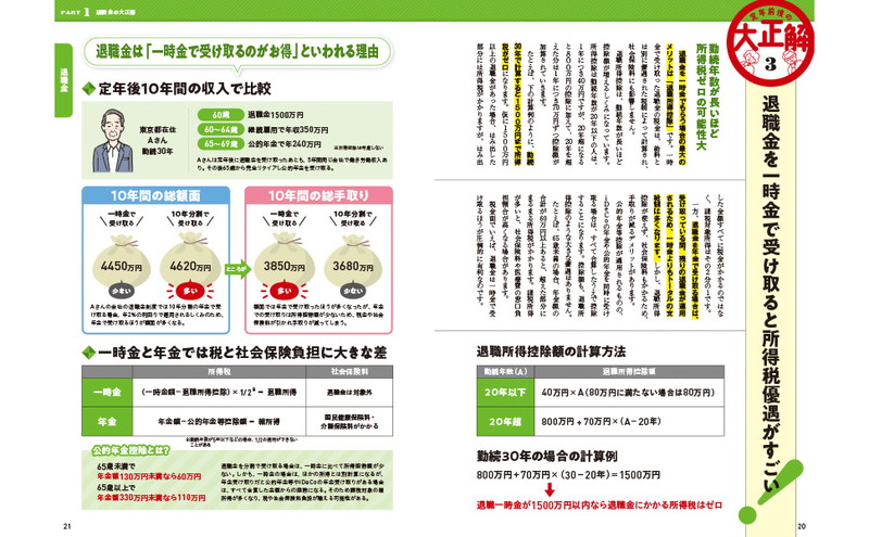 これから定年を迎える人、退職後の生活に不安がある人に向け、得する定年前後の選択を提示します。退職金、働き方、年金、節税、相続など気になるテーマに分けて、やるとやらないでは大違い、その選択で得する人と損する人を比較し、その大正解をわかりやすく見せます。定年前後の正解はこの一冊を読めばすべて網羅、老後に苦労しない方法を紹介します。