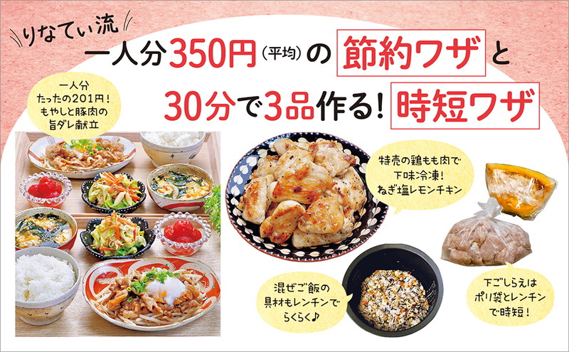 もちろん、りなてぃらしいご飯がすすむボリュームたっぷりの豪華さはよりパワーUP! 節約食材をおいしく使い切れるので、食費もダウン、時短ワザもたっぷり、と良いことずくめ。