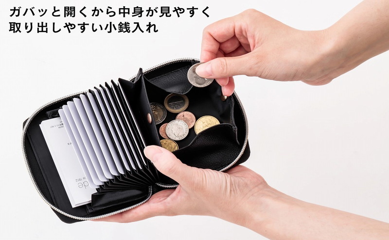 じゃばら式カード入れ+ガバッと開く小銭入れ……見やすさと取り出しやすさにこだわったミニ財布です。