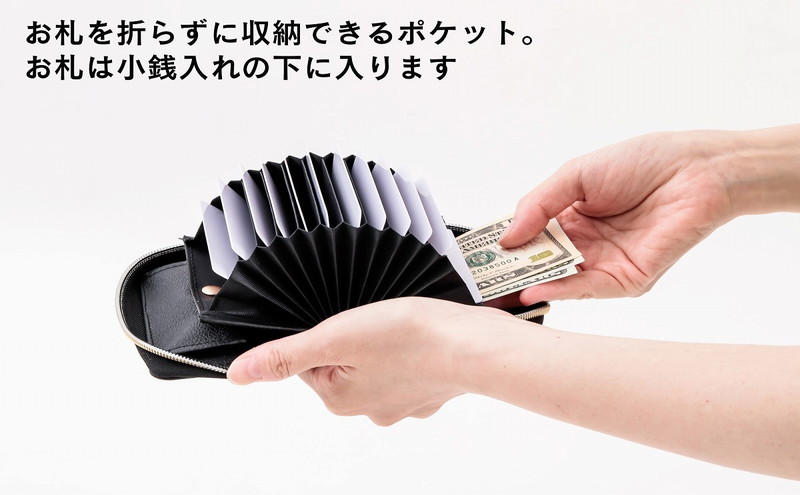 ミニ財布ながらお札を折らずに収納できるのもポイント。コンパクトな形とシンプルなデザインで、男女問わずお使いいただけます。