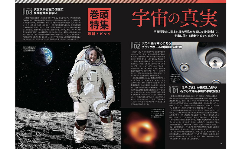 「宇宙の中心と端はどこにある?」「正体不明のダークマターとは?」「木星は地面のない星だった!」――いままでに私たち人類が解明した謎多き“宇宙のすべて”を写真とイラストでわかりやすく説明。日進月歩の宇宙開発・宇宙研究の最新レポートも!