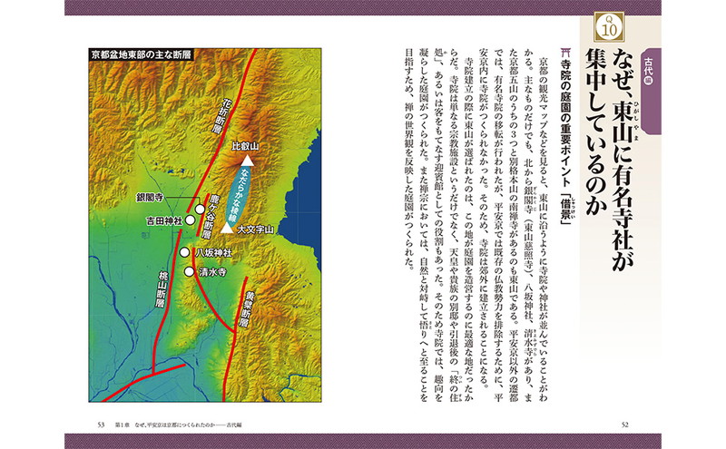 なぜ、東山に有名寺社が集中しているのか? なぜ、豊臣秀吉は京都を御土居で囲んだのか? なぜ、京都人は「町」意識が強いのか? 1200年続く京都の成り立ちから現代までの謎と秘密を「地形」や「地理」の観点から迫り、京都独特の歴史の謎を解き明かす。豊富なカラー地図・地形図つきで解説します。