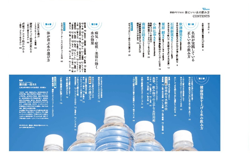 名医に聞く本当に正しい「水飲み健康法」がわかる一冊です。漫然と一日を通して小まめに水分を摂取するのは、間違い! 健康効果がないどころか体に負担をかけてしまうことがあります。飲むタイミングや量、温度など健康効果に差がでる水の飲み方を名医が伝授します! 不調ごとにオススメの水や、目的別の水の選び方も掲載。今、飲んだ方がよい水の種類、自分に合う水がわかるカタログや、取り寄せ方法の紹介も必読です!