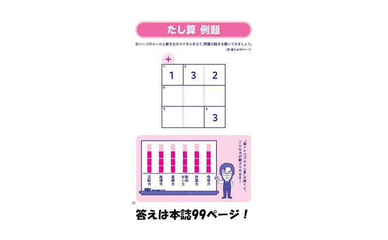 発想力、計算力、数的センス、着眼力、推理力、忍耐力などの脳力も鍛えることができます。買い物の際に計算が素早くできたり、時間配分がうまくなったり、物事の違和感に気づくことができたりと、日常生活でも役立つ力をこの一冊で養いましょう!