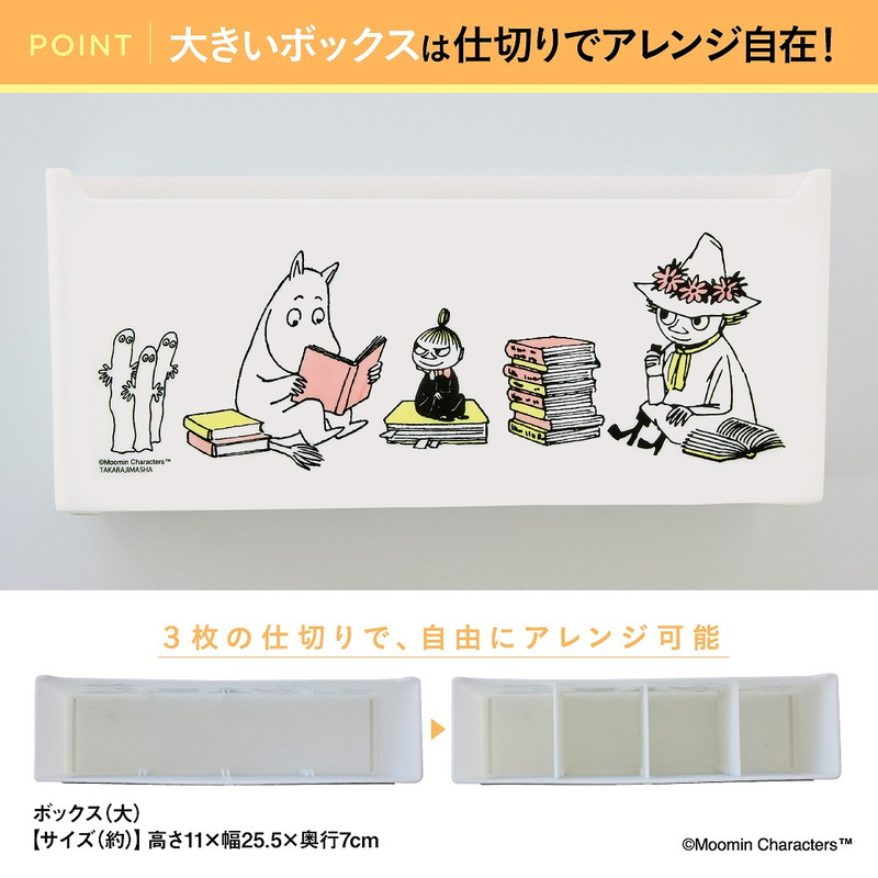 ムーミンやリトルミイ、スナフキン、ニョロニョロと、人気のキャラクターが勢ぞろいのかわいいマグネット収納ボックス。
