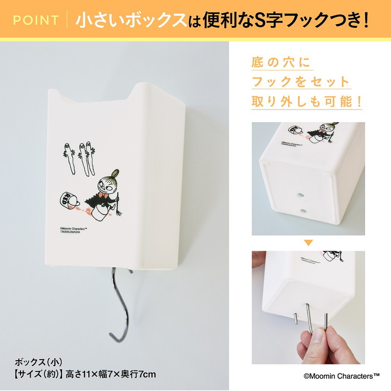 小さいボックスは取り外し可能なS字フックつきで、ちょっとした小物をひっかけて使うのに便利です。