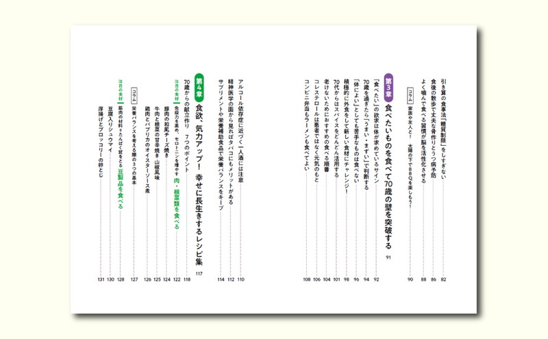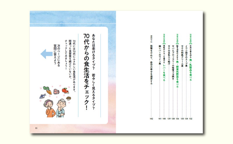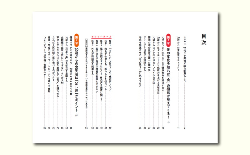 本書では「食」をテーマに、70歳という老後を左右する壁を乗りこえるための栄養素や食材、食べ方の工夫を紹介していきます。