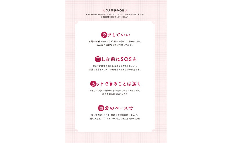 そこでいま求められているのが、疲れない! 頑張らない! 無駄のない「家事」です。