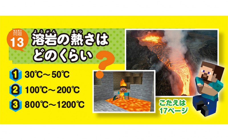 実世界の写真とともに解説した大好評の自然科学図鑑『マインクラフトで楽しく学べる! 地球のひみつ大図鑑』に、もっと楽しく理科の知識が身につけられる、新感覚の三択クイズ版が登場です。