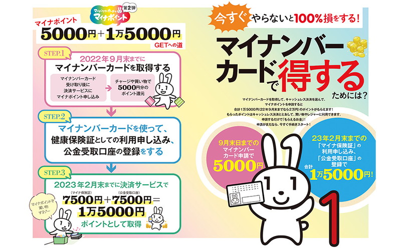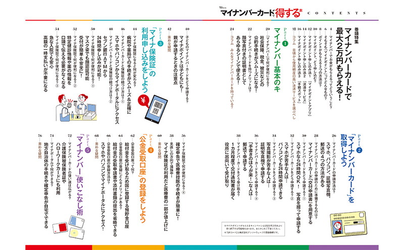 現在、最大2万円分がもらえる「マイナポイント第2弾」がスタートしました。マイナンバーカードをまだ作成していない人なら2万円分、作成している人でも1万5000円分のポイントがもらえるチャンス! 本誌では、マイナポイントの3つの手続きを画面付きでわかりやすく解説。さらにマイナンバーカードを持っていることでできること、便利になることなど、使いこなしのポイントも徹底解説します!