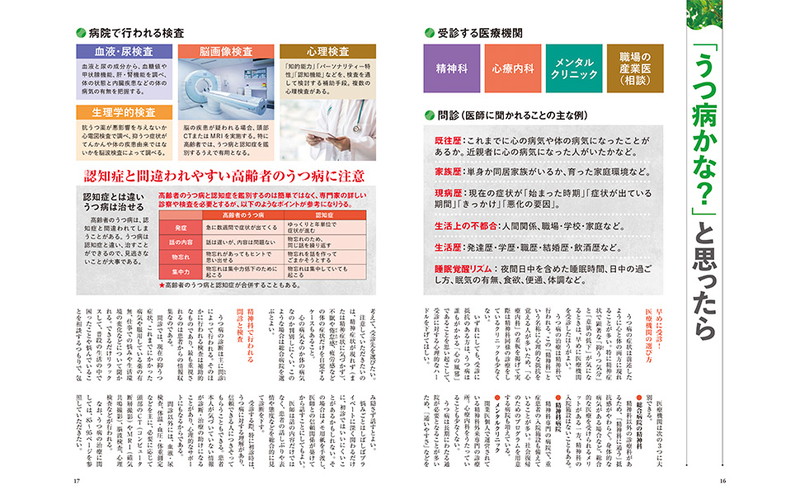 「うつ病の診断基準」「うつ病の病院での治療」など、心の病気の基礎知識も解説しています。
