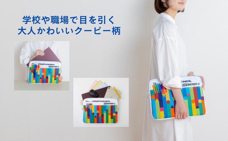 おなじみのクーピー柄のインパクト大の便利なマルチケースは、目を引くこと間違いなしです。