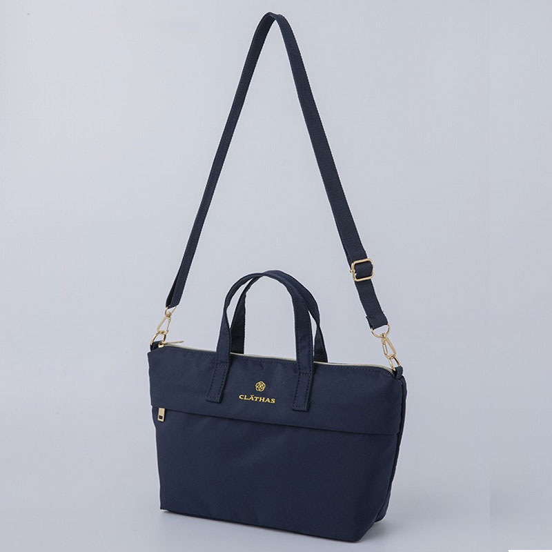人気ブランド「CLATHAS(クレイサス)」のショルダーバッグができました。こっくりとしたネイビーと、ゴールドのカメリアロゴが美しいデザイン。ポケットたくさんで整理しやすく、500mLペットボトルや長財布も入る大きさがポイントです。カジュアルにも使えるトートバッグフォルムで、さまざまなシーンで活躍すること間違いなし!
