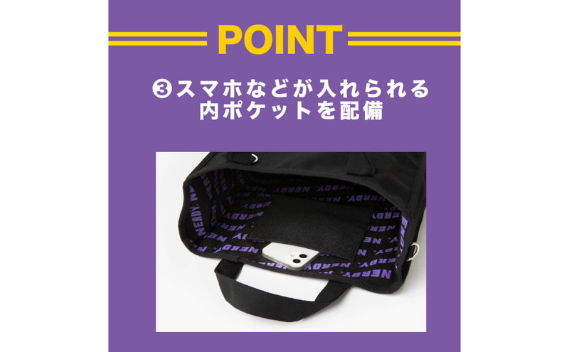 ユニセックスで使えるシンプルなブラックカラーで、裏地にはブランドロゴの総柄が。キーホルダーが付けられるDカンや、スマホを入れるのに便利な内ポケット付き。デザインだけでなく、使いやすさにもこだわった自信作です。