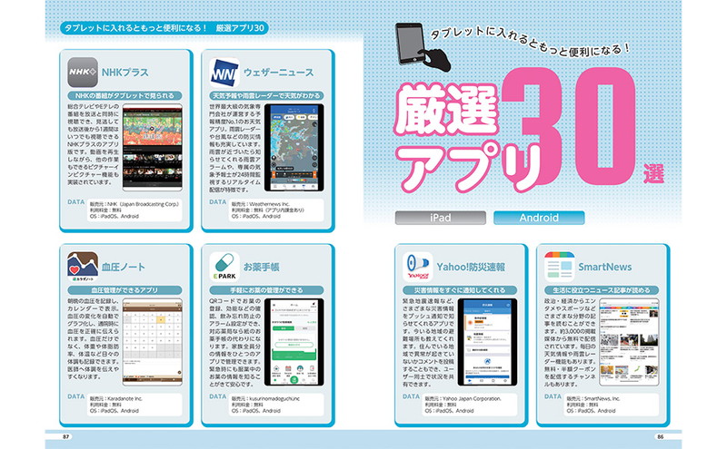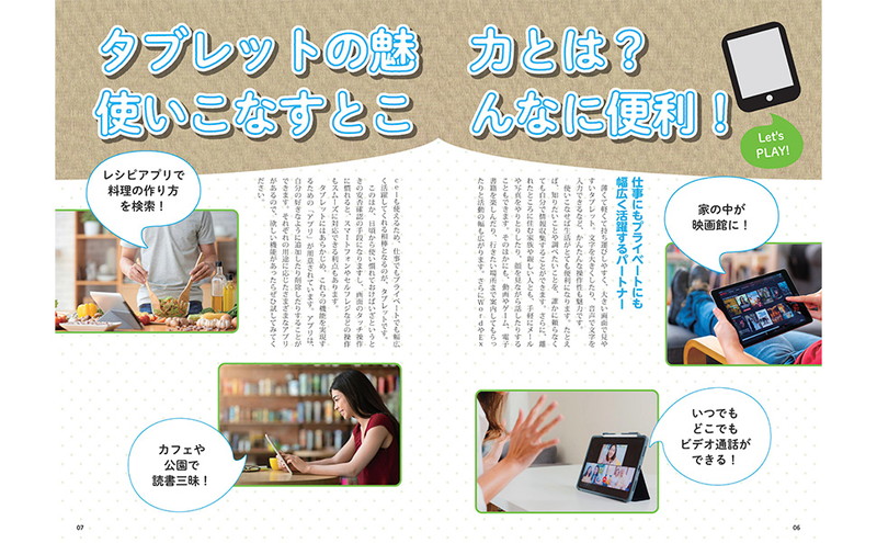 本誌は、使い方次第でさまざまなことに活用できるタブレットの指南書。新たな機能を使うためのアプリのインストール方法から、メールの送受信や検索といった基本機能、友だちとネットでつながるためのSNSの活用法、便利なネットバンキングやネットショッピングまで、見るだけでわかります。あなたのタブレットライフのお供に!